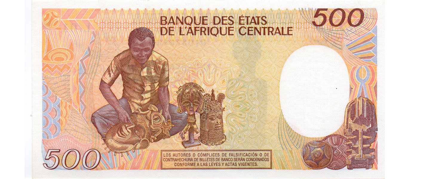 500 Francos, 01.01.1985, SIN CIRCULAR (UNC), P20, anverso: figurilla; reverso: tallista.