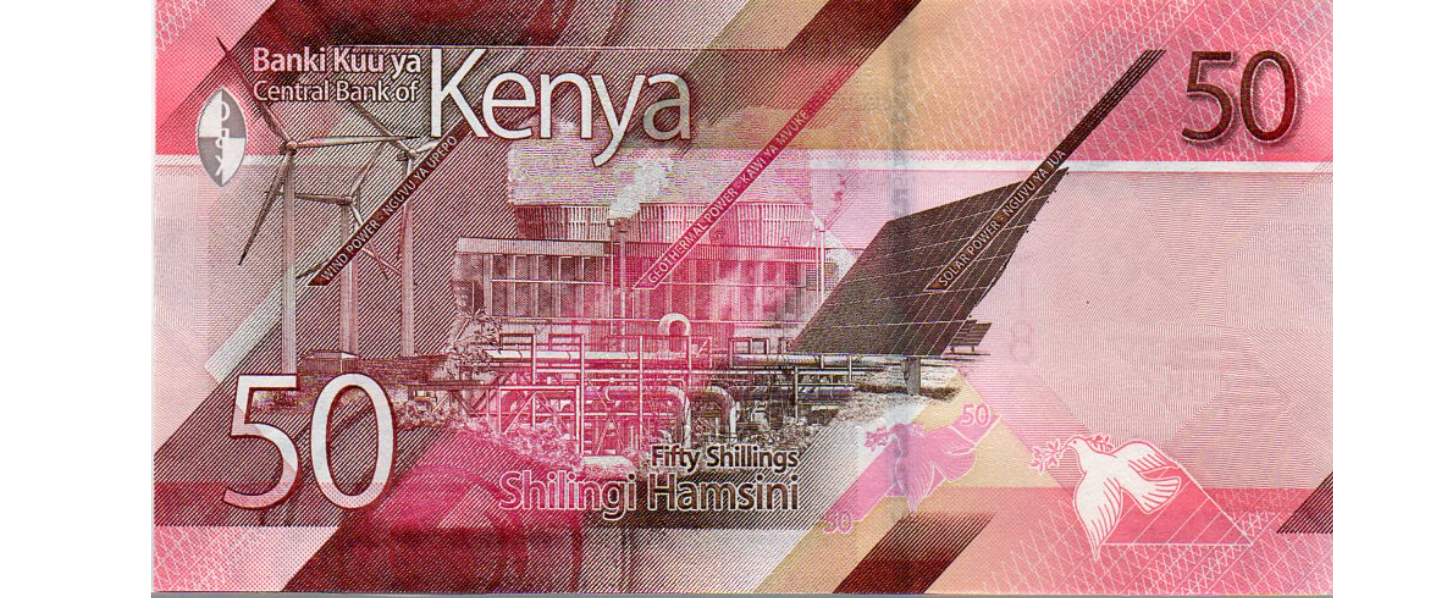 50 Chelines, 2019, SIN CIRCULAR (UNC), estatua de Kenyatta, centro de convenciones Internacional, nairobi, energía eólica, energía geotérmica, energía solar.
