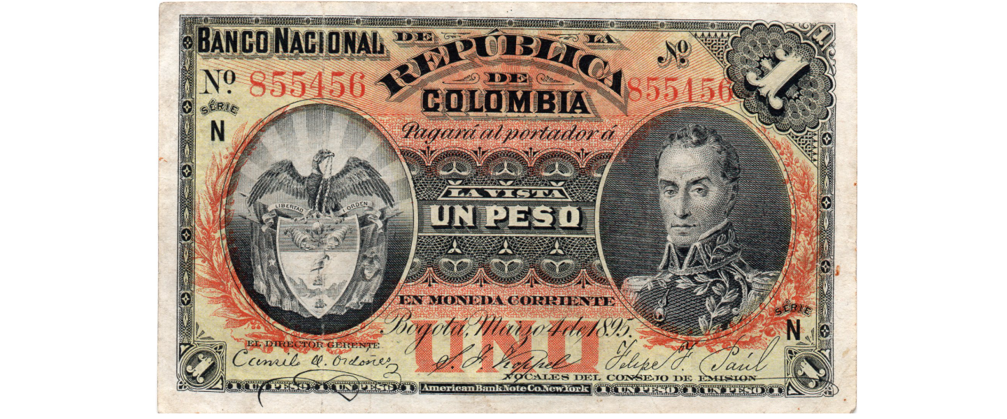 Colombia, Banco Nacional, 1 Peso 1895 serie N,XF.