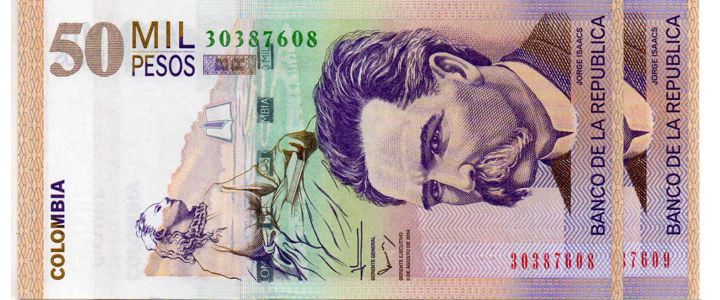 50,000 Pesos, 06 de agosto de 2014, SIN CIRCULAR (UNC), ABNC, anverso: Jorge Isaacs. Perfecto estado. Se ofrece una PAREJA de billetes consecutivos.