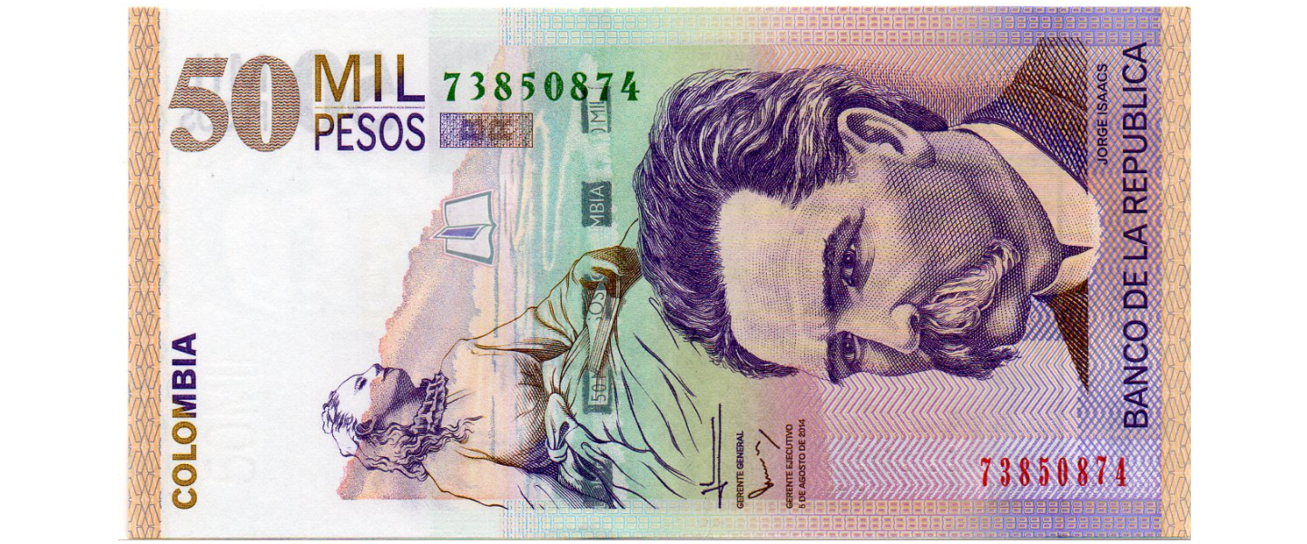 50,000 Pesos, 05 de agosto de 2014, SIN CIRCULAR (UNC), ABNC, anverso: Jorge Isaacs. Perfecto estado.