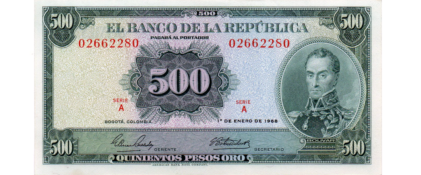 Colombia, BRC, 500 Pesos 1968, UNC.