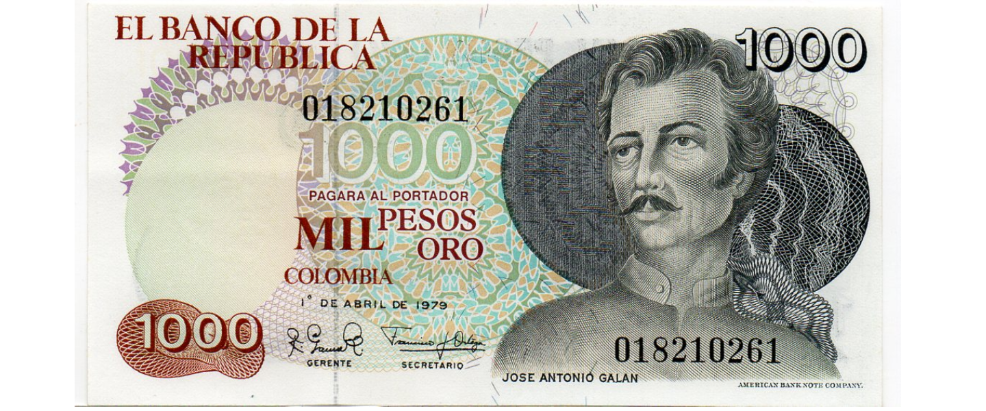 Mil pesos, 1979-04-01, UNC, Impresor: American Bank Note Company, José Antonio Galán, reverso: Palacio de Nariño.00000