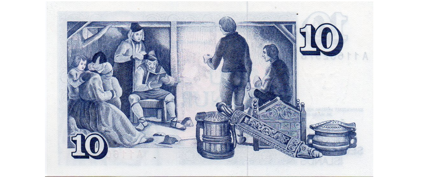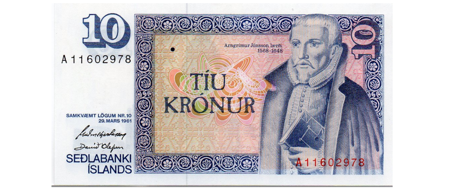 10 Coronas, L. 29.03.1961, P-48a(3), SIN CIRCULAR (UNC), Arngrímur Jónsson, Antiguo hogar islandés.