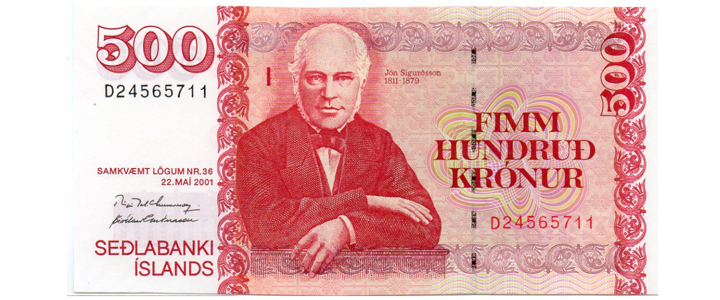 500 Coronas, L. 22.05.2001, P-58a(1), SIN CIRCULAR (UNC), anv. y rev. Jón Sigurðsson, firmas: B. I. Gunnarsson & Eiríkur Guðnason.