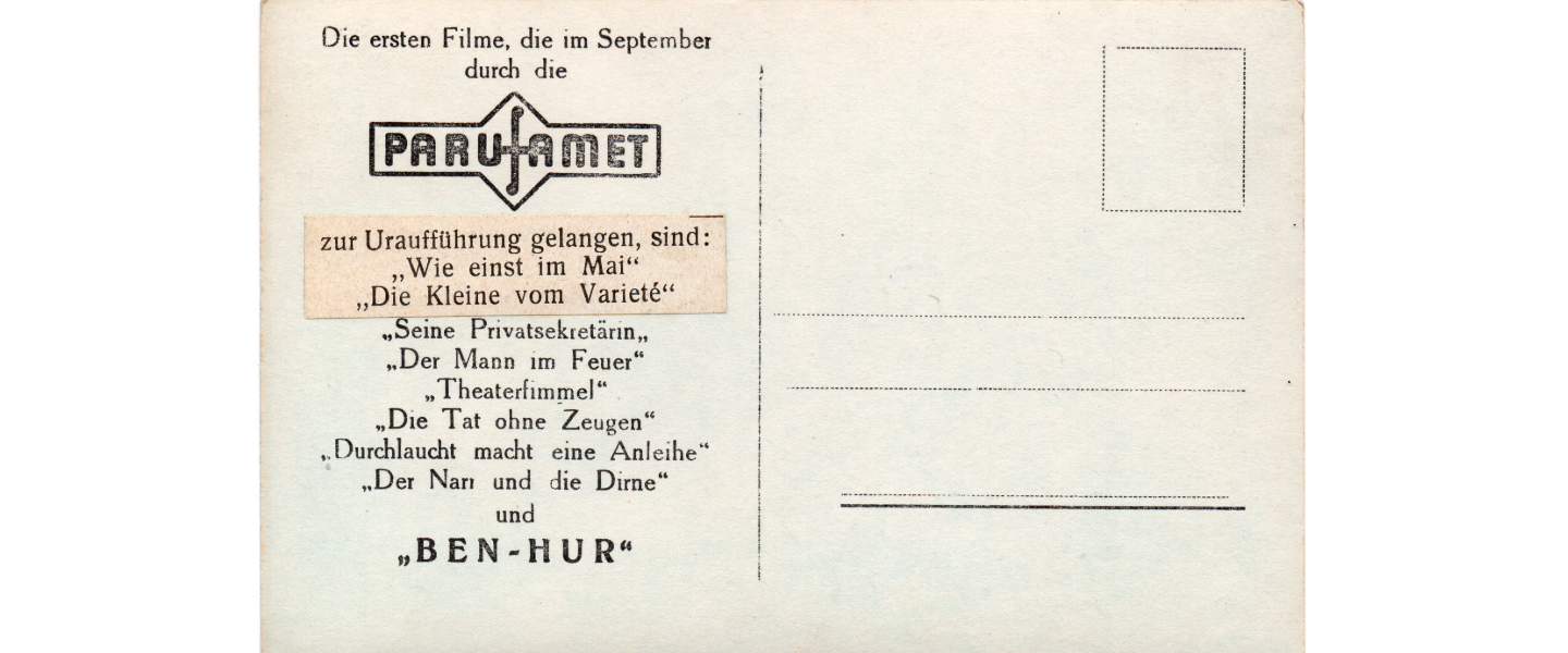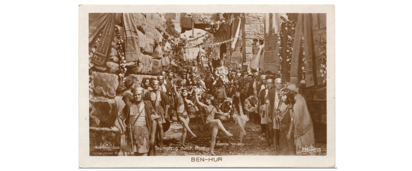 Tarjeta postal, imagen y texto alusivo a la película BEN HUR, texto en alemán, interesante.