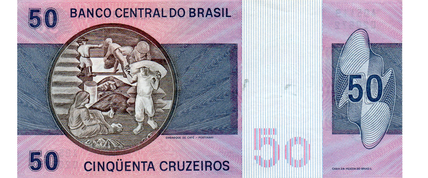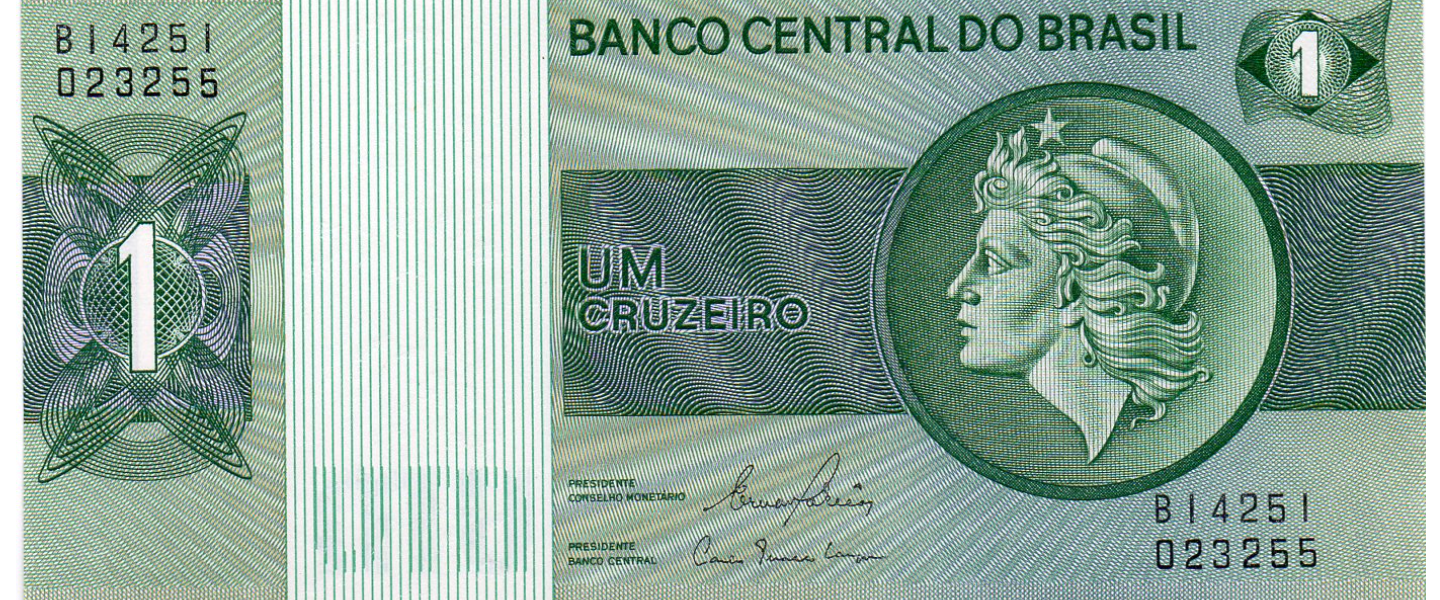 Set de 1, 5, 10, 50 Cruzeiros, ND (1972, 1975, 1980), SIN CIRCULAR (UNC) Nota: el valor 50 tiene 2 pequeñas manchas reverso.