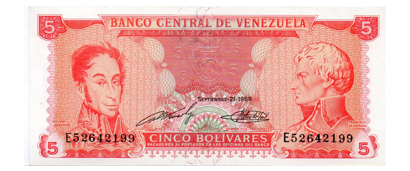 Venezuela, 5 Bolívares, aUNC, serie A.