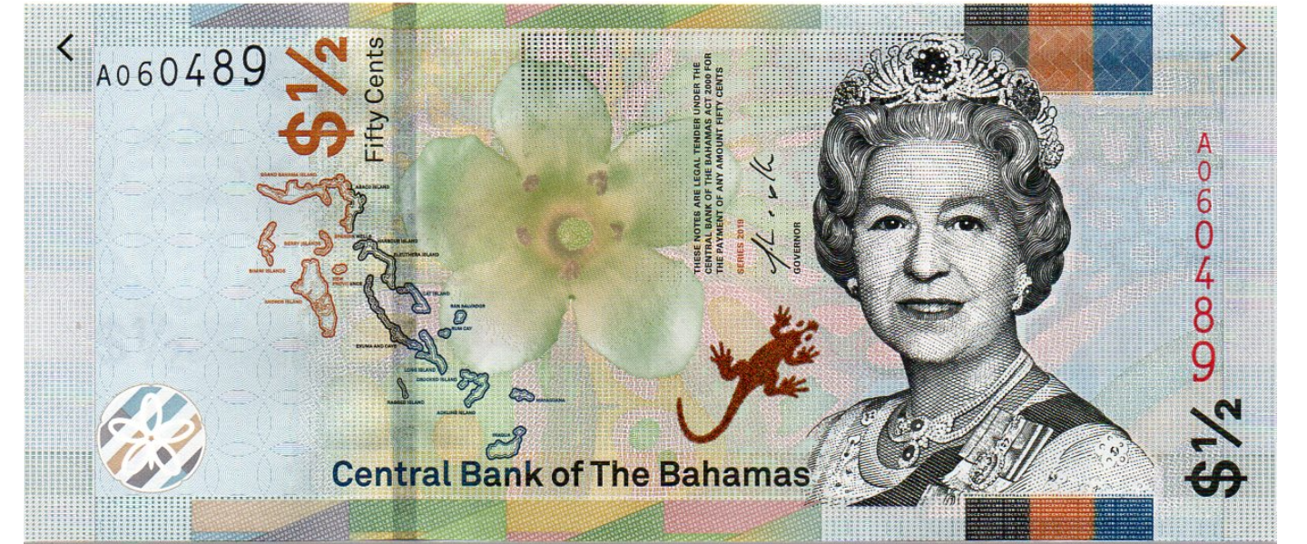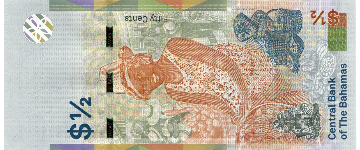 50 Centavos, 2019, SIN CIRCULAR (UNC), Impresor: Oberthur Fiduciaire Francose, Elizabeth II, flor, contorno de las Bahamas, hermana Sarah, Mercado en Nassau.