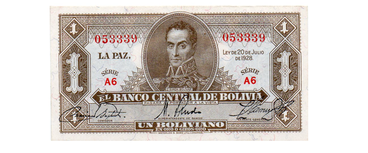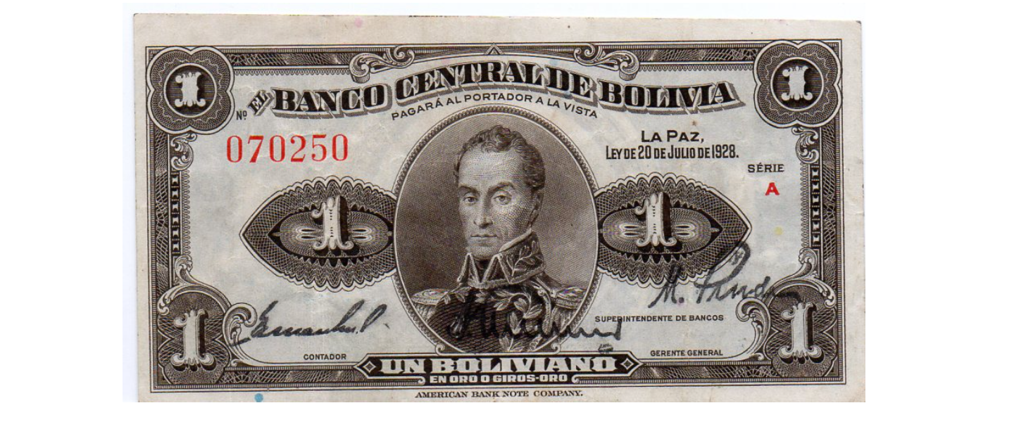 1 Boliviano, L. 20.07.1928, P-119a, EXTRA FINO (XF), firmas: Arce (angosto), Cuenca, Prudencio.