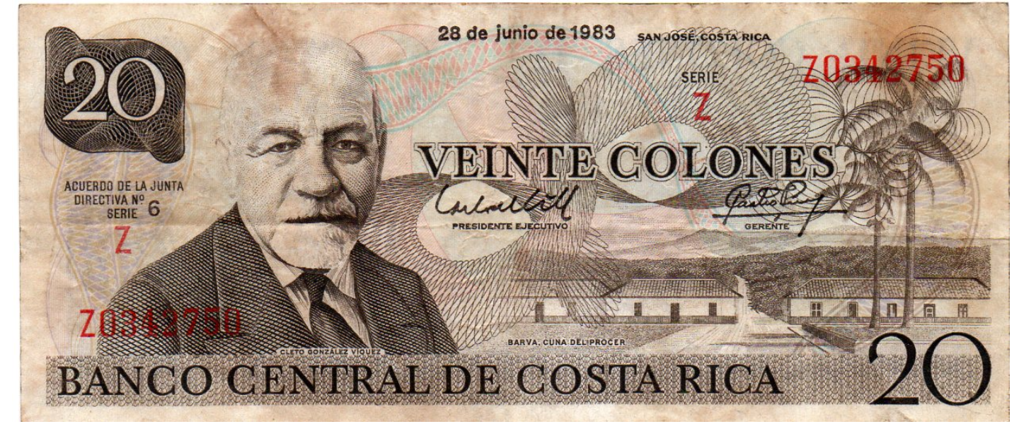 Costa Rica, 20 Colones, F.