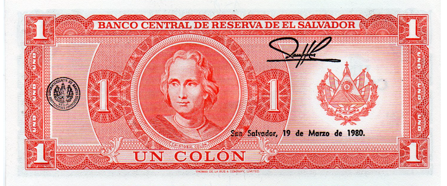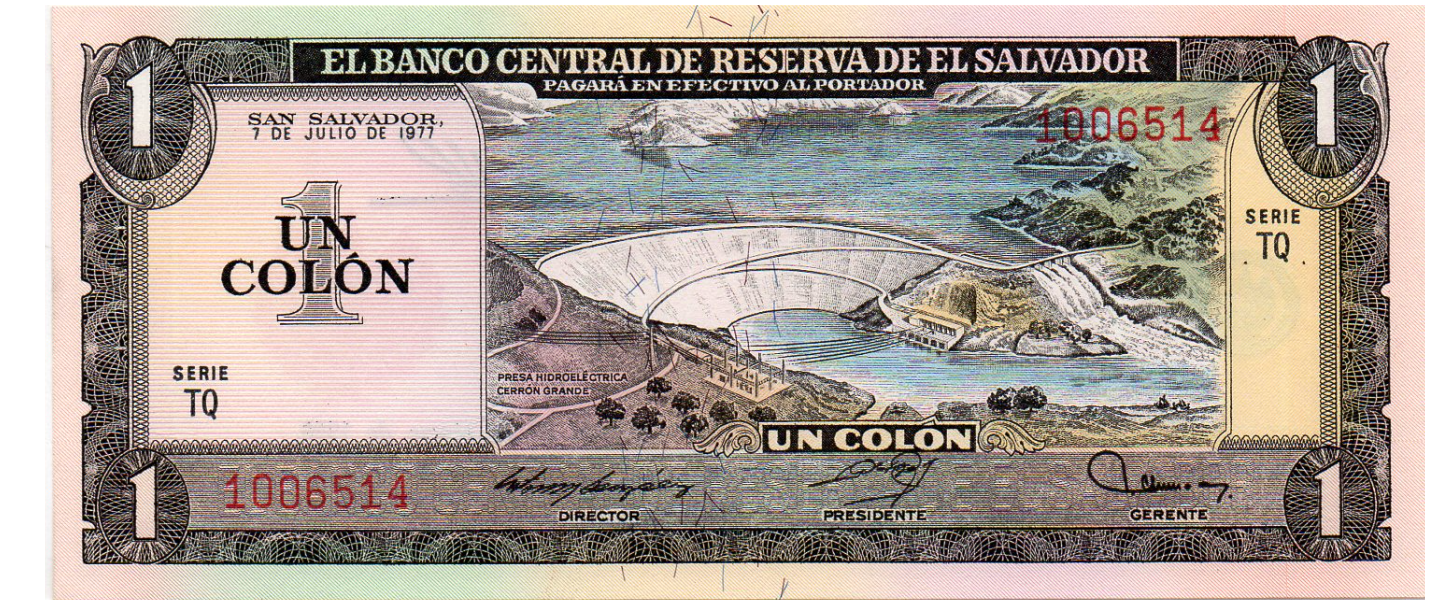 1 Colón, 19.03.1980, SIN CIRCULAR (UNC), P125a, anverso: Represa hidroeléctrica "Cerrón Grande"; reverso: Cristóbal Colón. Muy bella pieza!