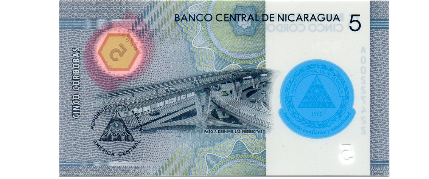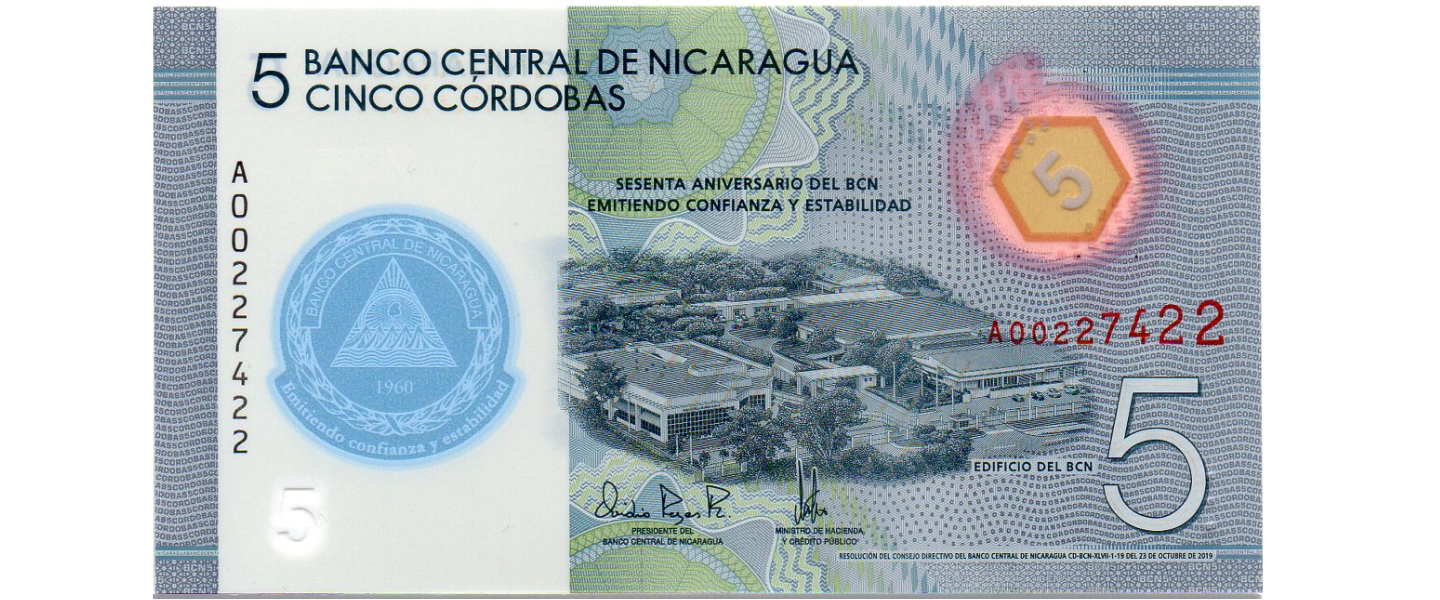 Nicaragua, 5 Córdobas, polímero, 23.10.2019, SIN CIRCULAR (UNC), 60 Aniversario del Banco Central de Nicaragua (1960-2020).03