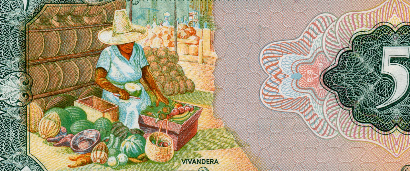 5 Cóordobas, 27.04.1972, P-122, SIN CIRCULAR (UNC), serie C, impresor: Thomas de la Rue, Londres, anverso: Cacique Nicarao, reverso: vendedora de frutas.