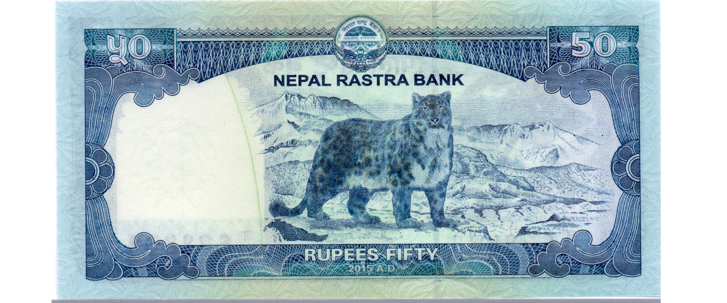 50 Rupias, 2015, P-79, SIN CIRCULAR (UNC), anverso: monte Everest, templo Rama-Janaki, reverso: leopardo de nieve.