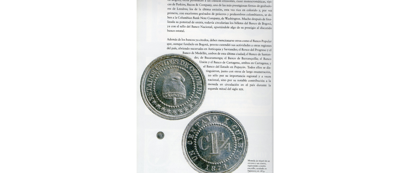 Libro Panorama Histórico de la Moneda Colombiana en los 125 años del Banco de Bogotá, excelente estado de conservación, magníficas imágenes e información.