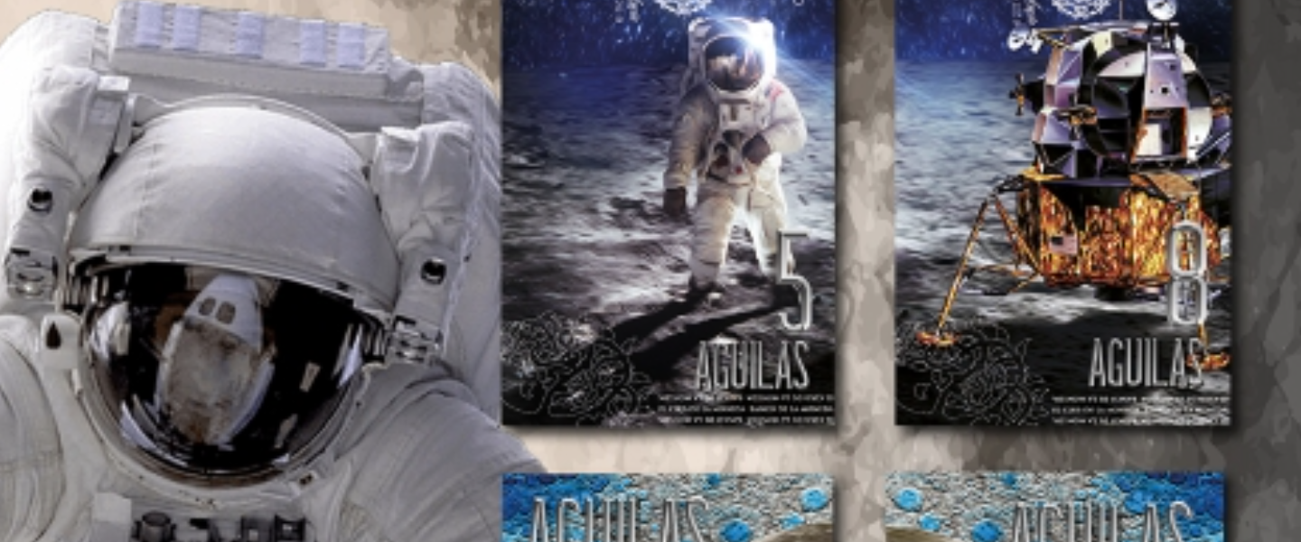 Set de dos (2) billetes APOLO 11 CINCUENTA AÑOS, elaborados por Banco de la Moneda, Medellín. Denominaciones de 5 y 8 águilas, poseen realidad aumentada.