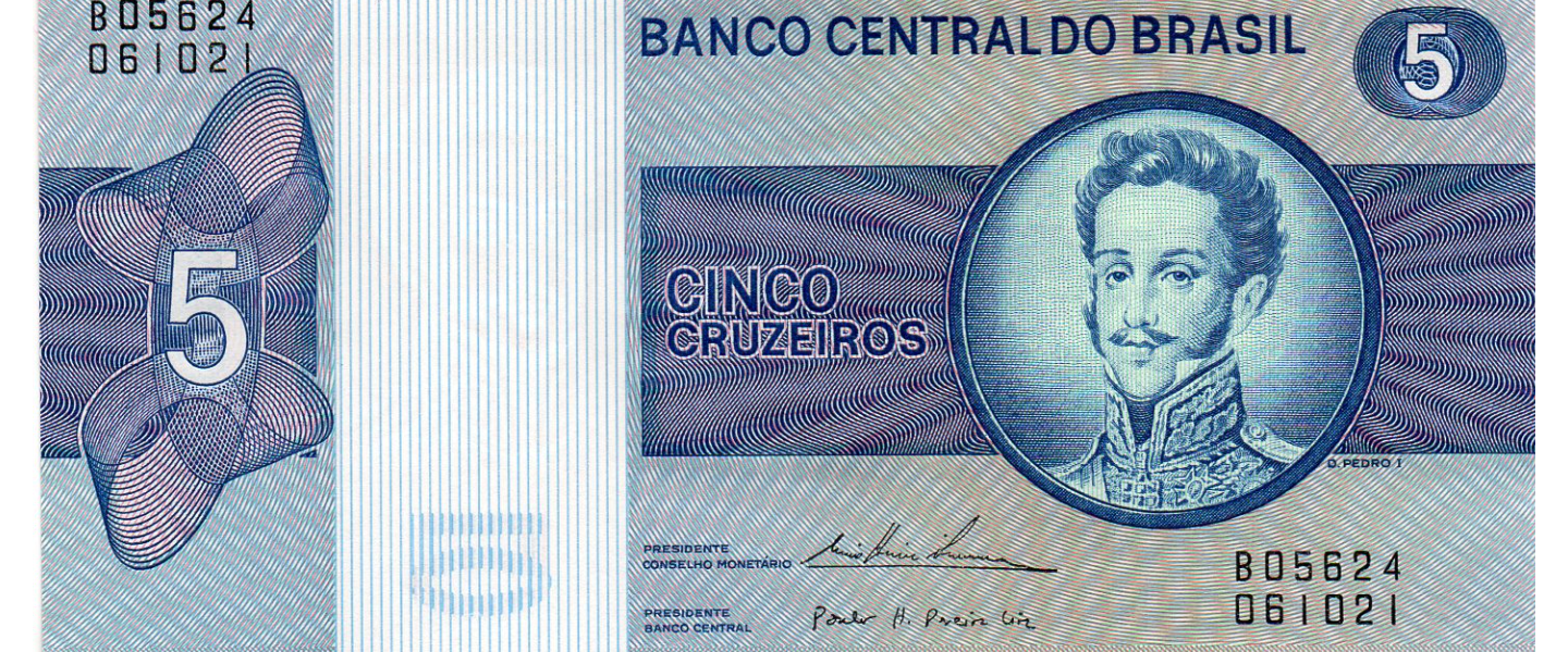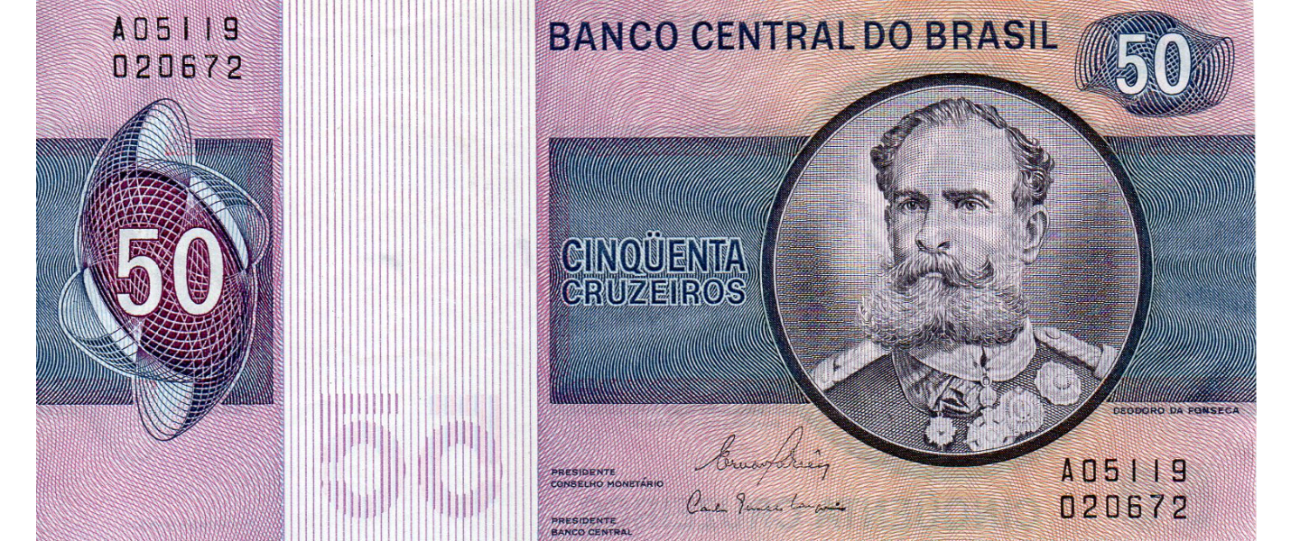 Set de 1, 5, 10, 50 Cruzeiros, ND (1972, 1975, 1980), SIN CIRCULAR (UNC) Nota: el valor 50 tiene 2 pequeñas manchas reverso.
